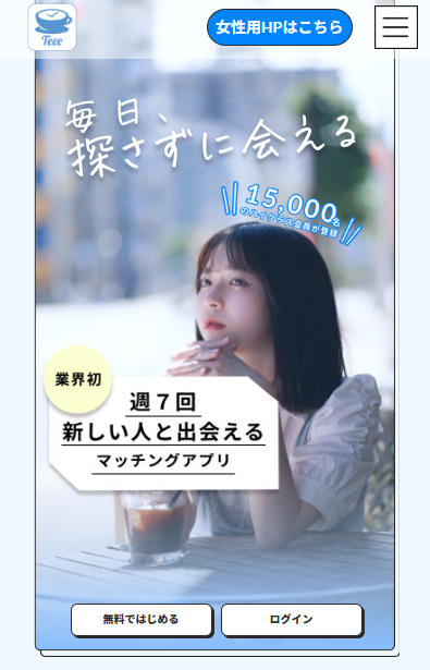 Teee(ティー)は、完全審査制×AIマッチング×リアルデート重視の、新しい形のマッチングアプリです。